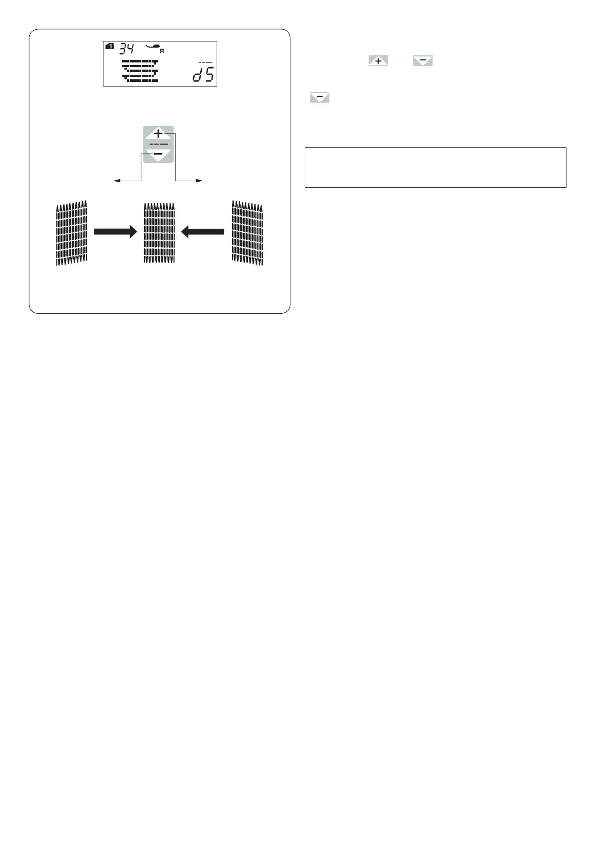 pressing the “ ” or “ ” key of the stitch length