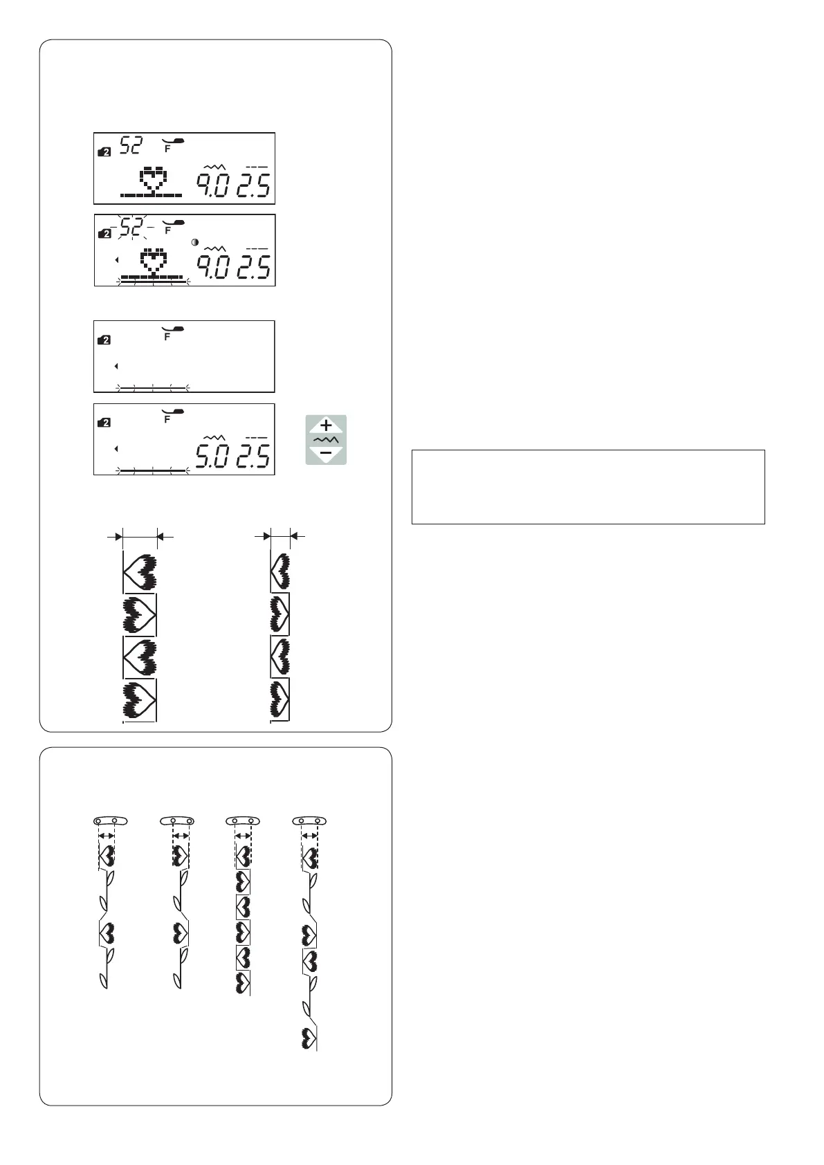 The stitch width and length of the programmed patterns