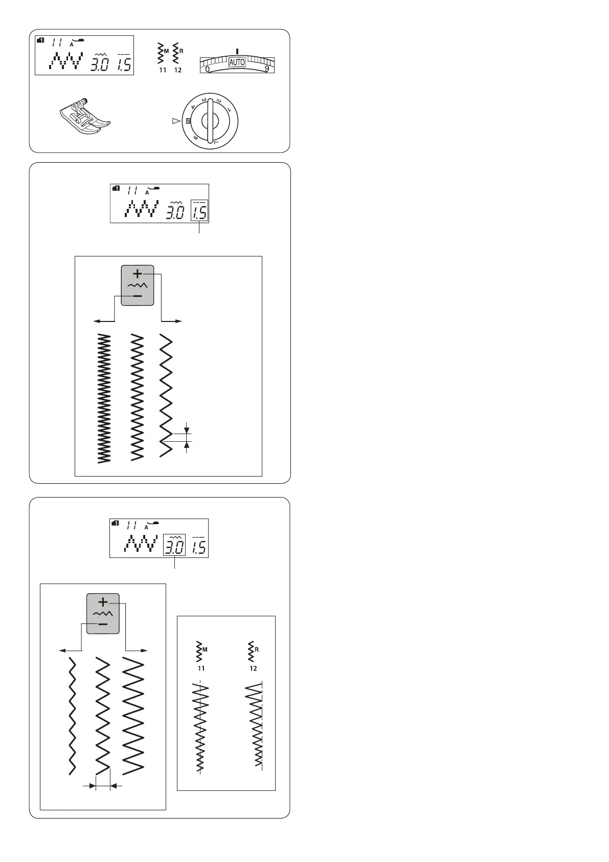 The stitch length of the zigzag stitches can be altered by