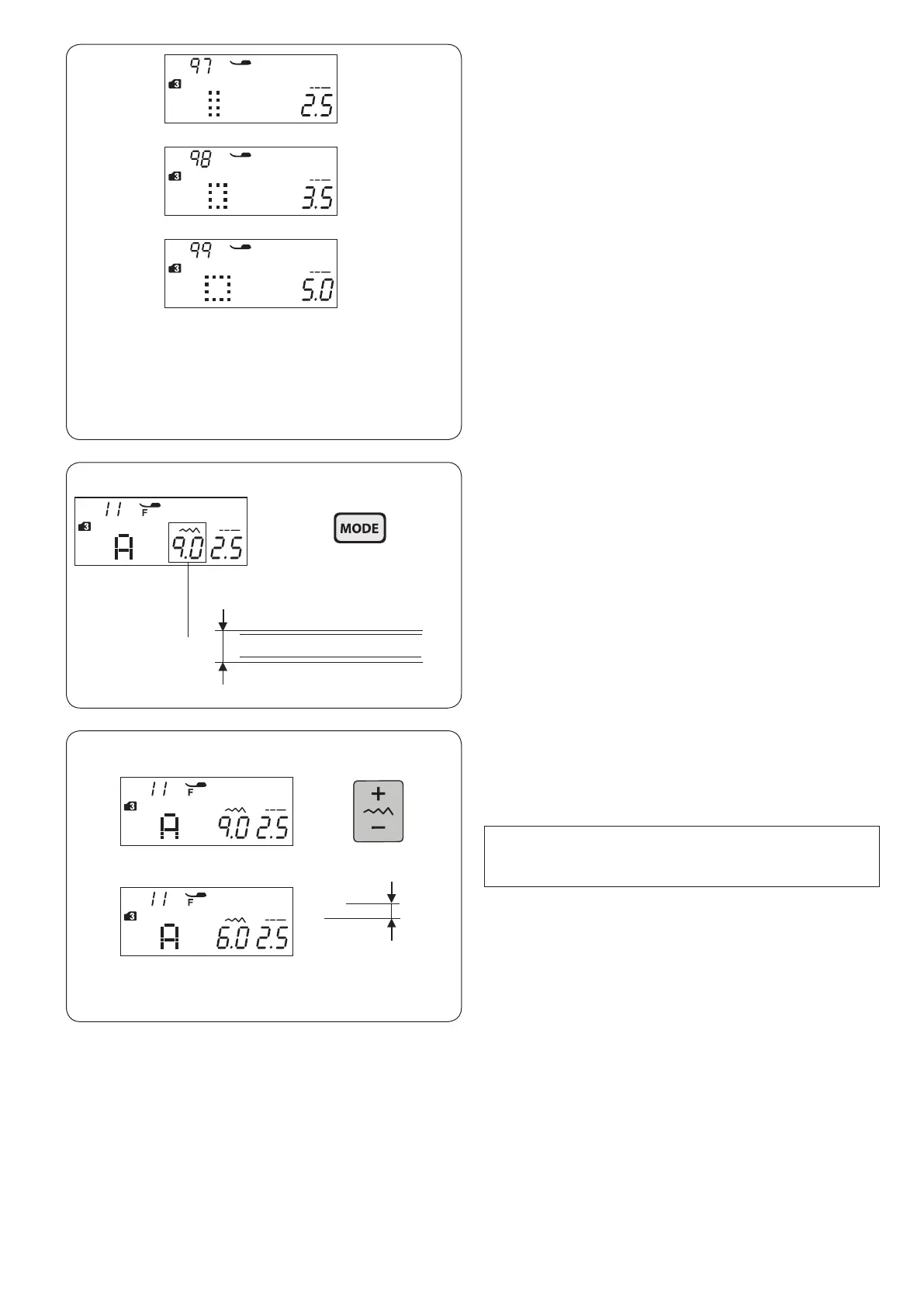 and press “ – ” of the stitch width adjusting key.