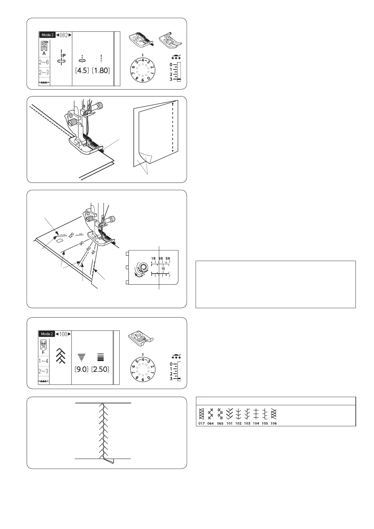 Patterns 082 to 084 in mode 2 are special stitches for
