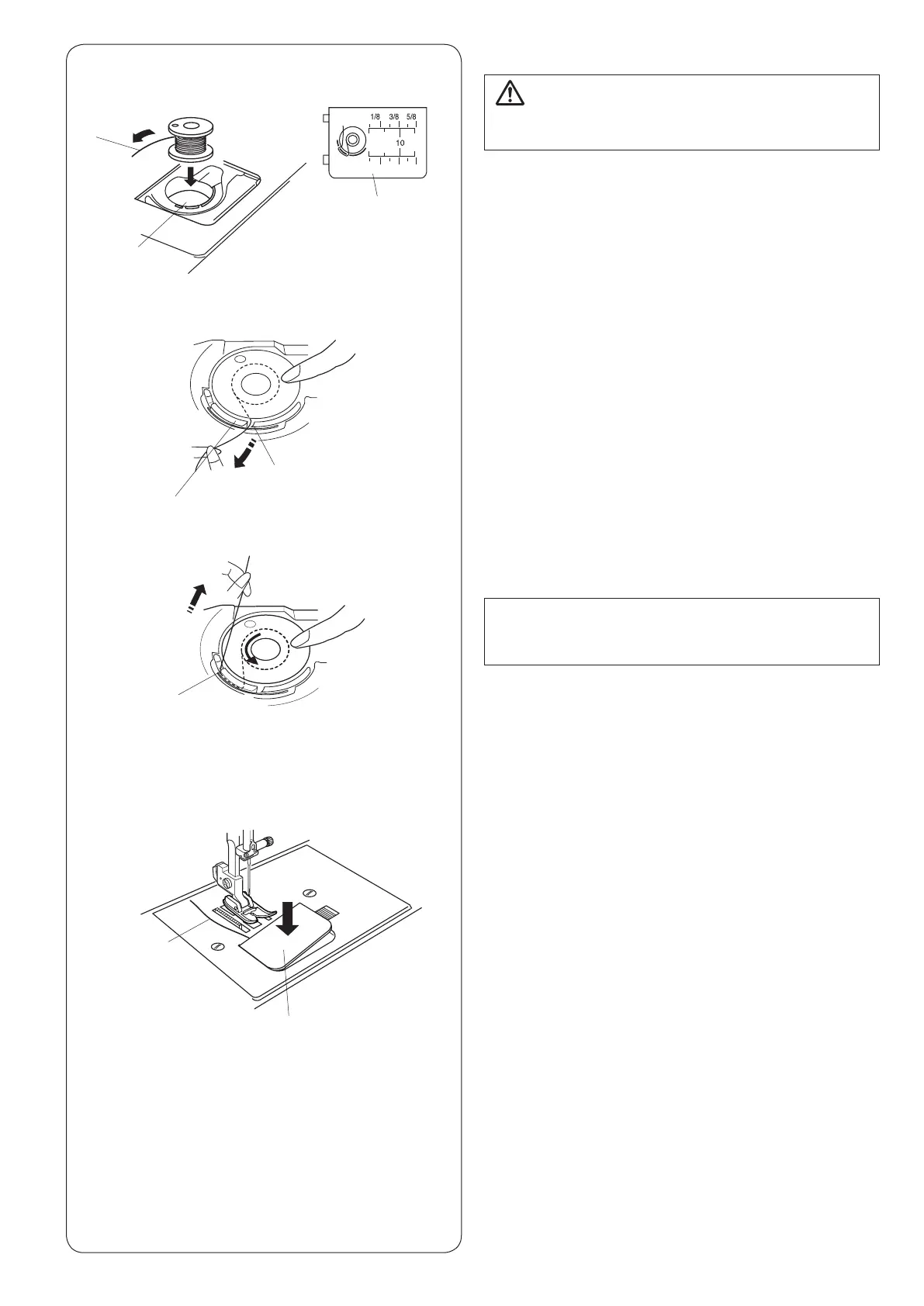 x Hold the bobbin with your ngertip so it does not