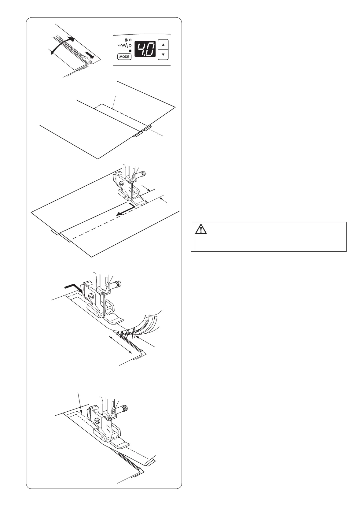 Stop the machine 5 cm (2˝) before the foot reaches