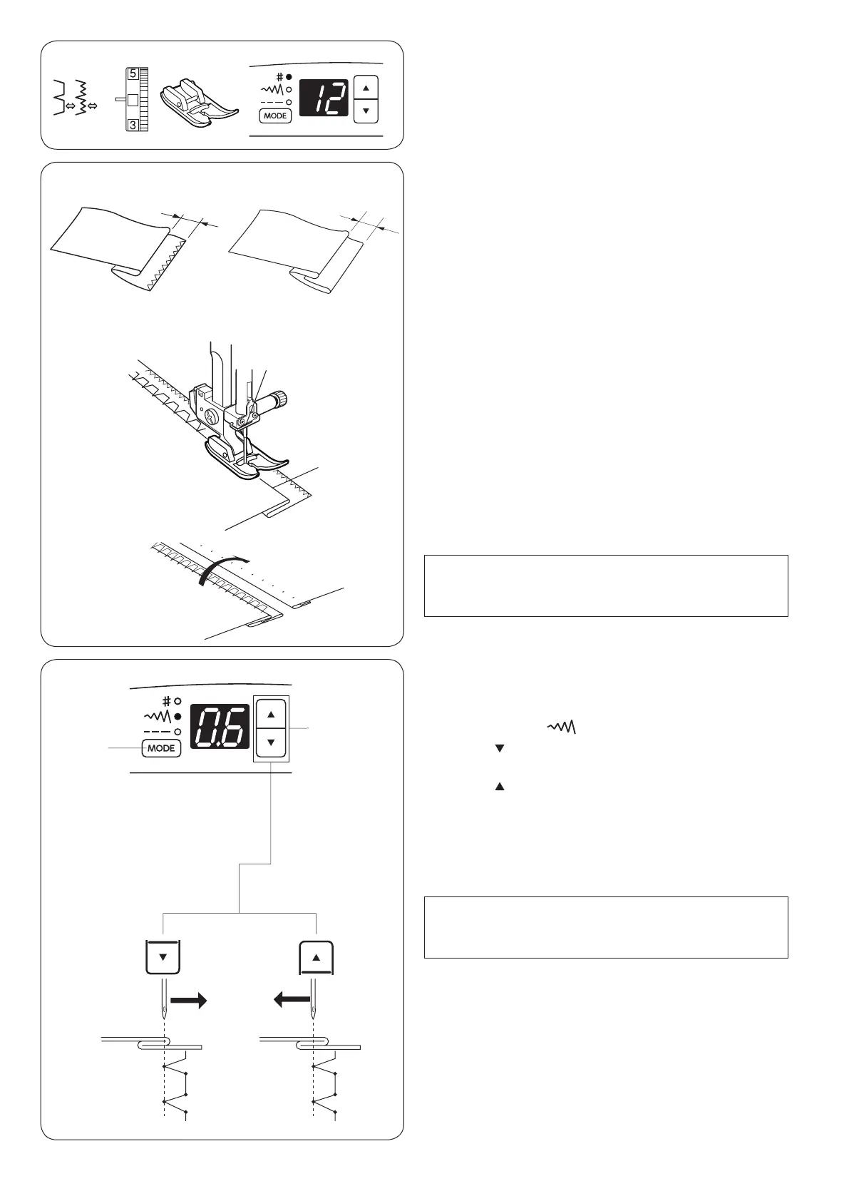 Press the mode key q to select the stitch width