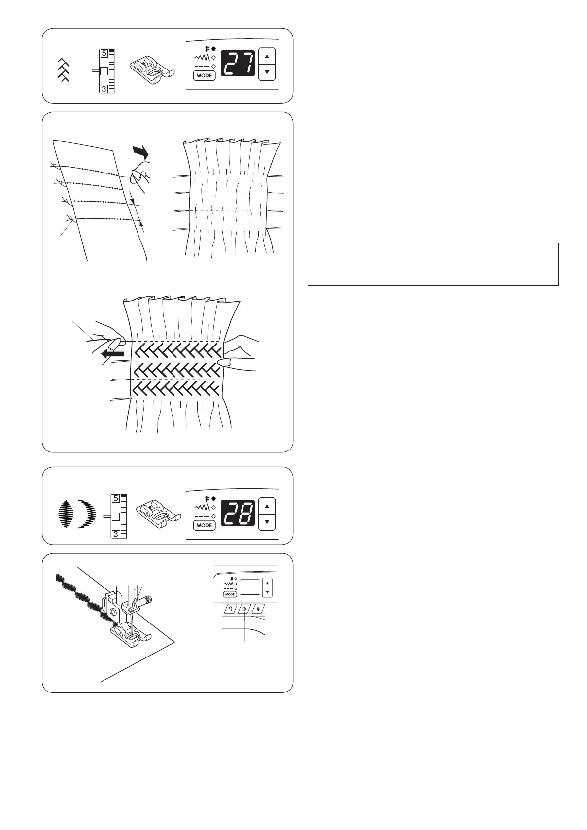 Pull up the needle and bobbin threads and draw a 4˝ (10