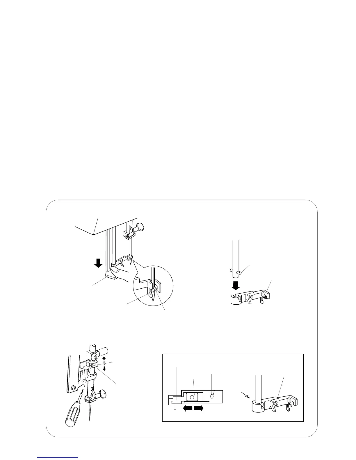 2. If the hook on the threader plate touches the top or bottom side of the needle guide, loosen
