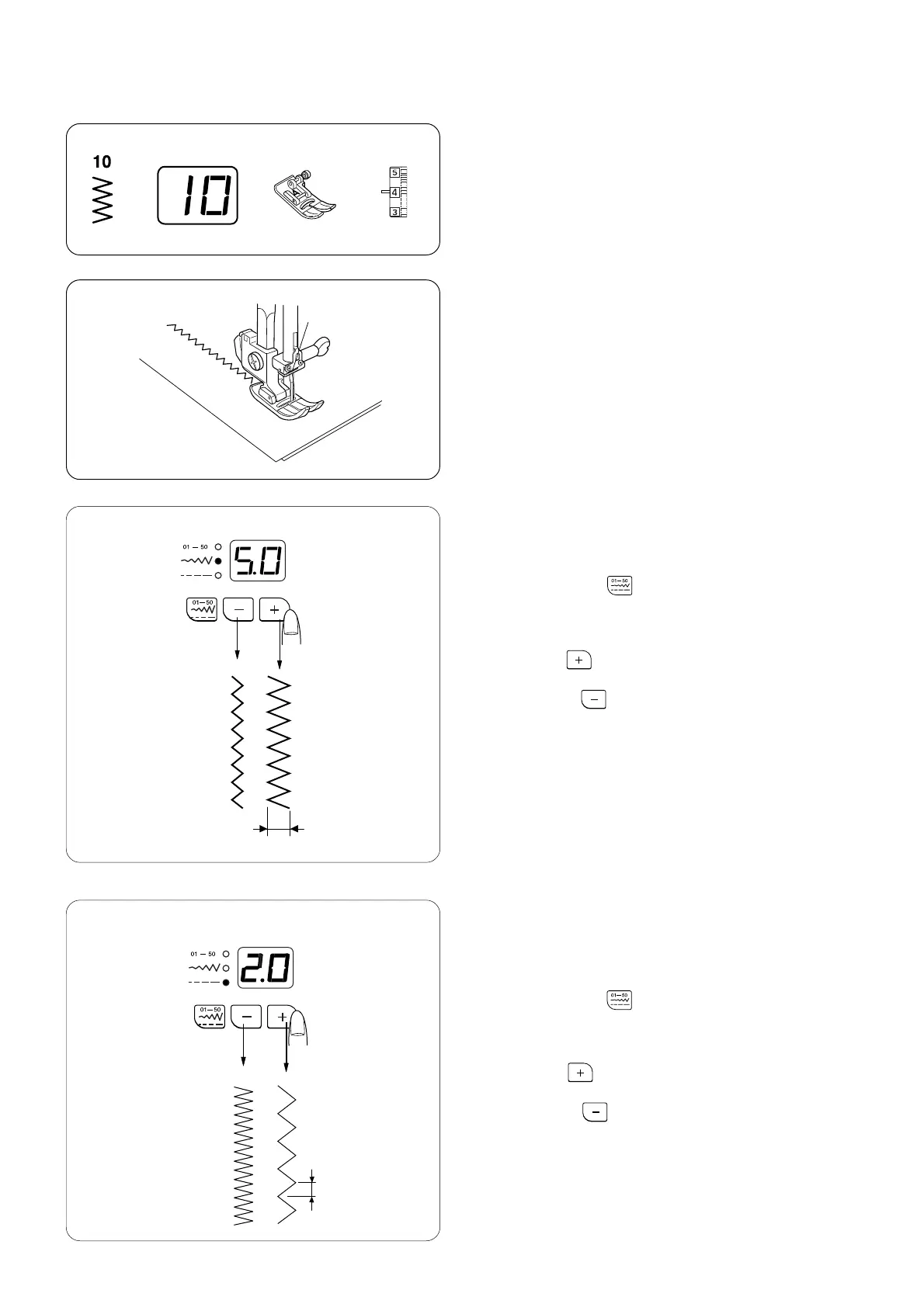 Press the plus key to increase the stitch length w.