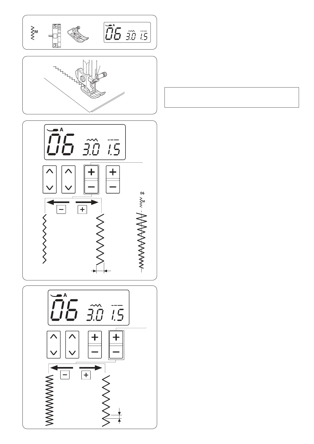 Press the “+” sign on the stitch width adjusting key to