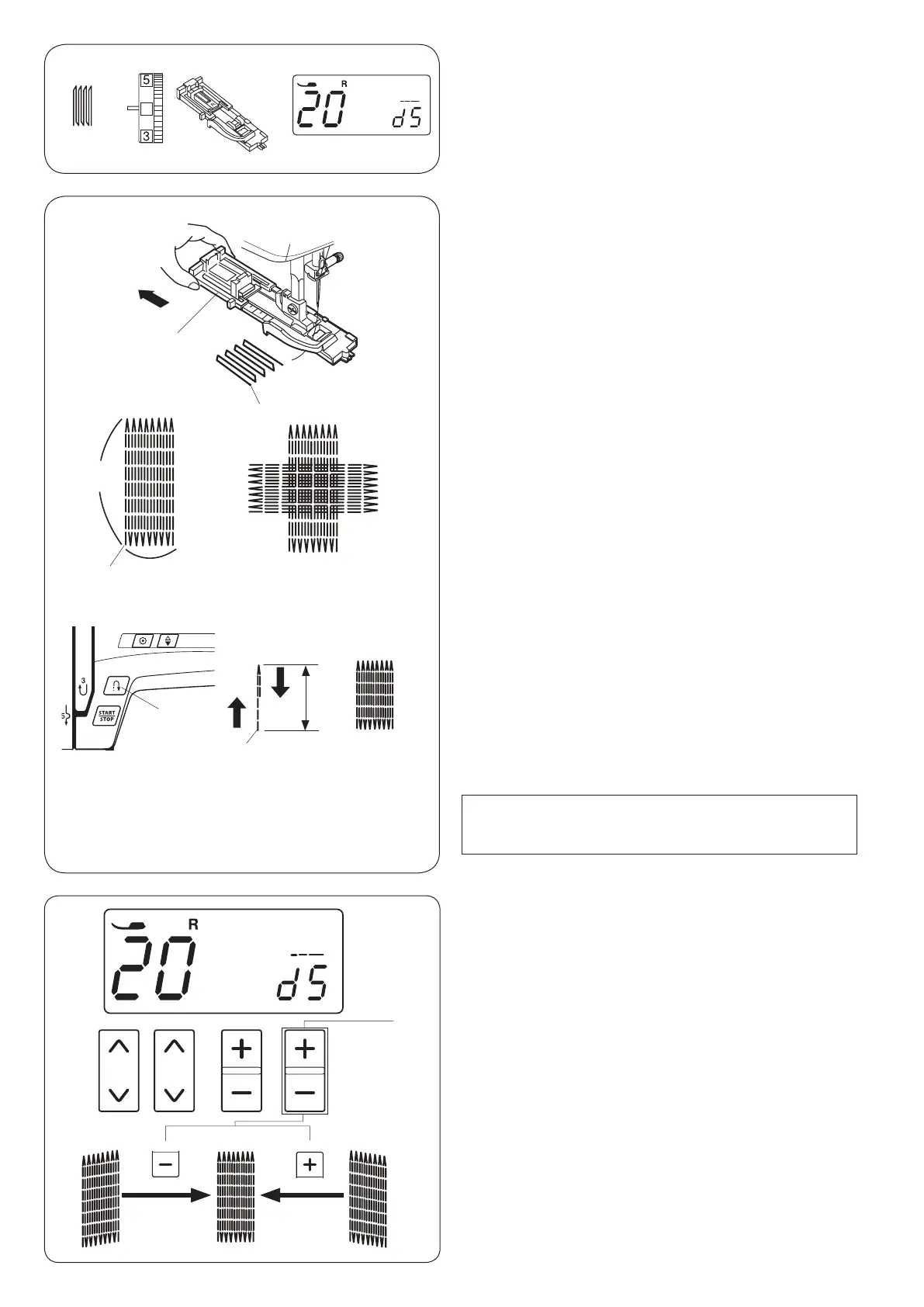 press the “+” sign on the stitch length adjusting key q to