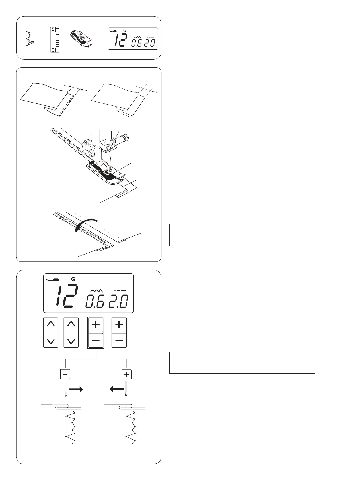 Press the “+” sign on the stitch width adjusting key q to