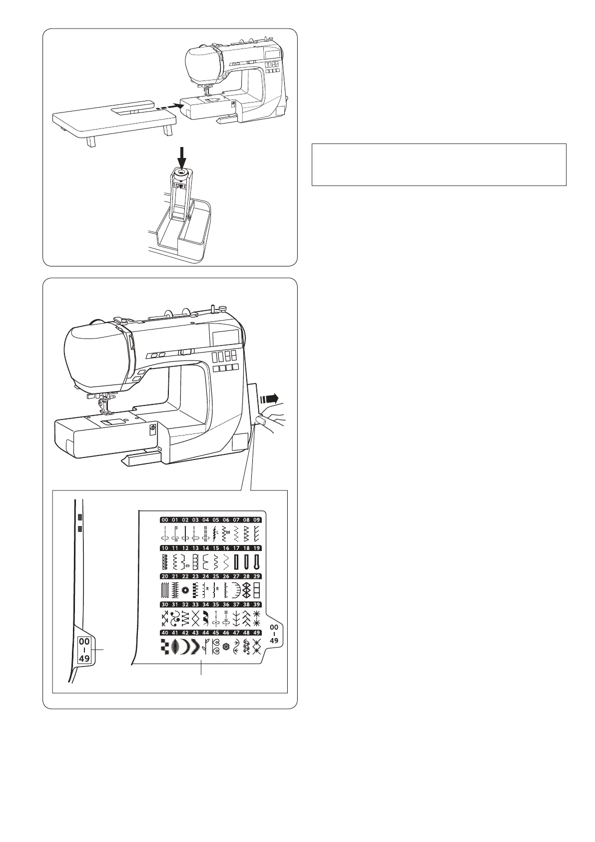 The number on each tab indicates stitch pattern