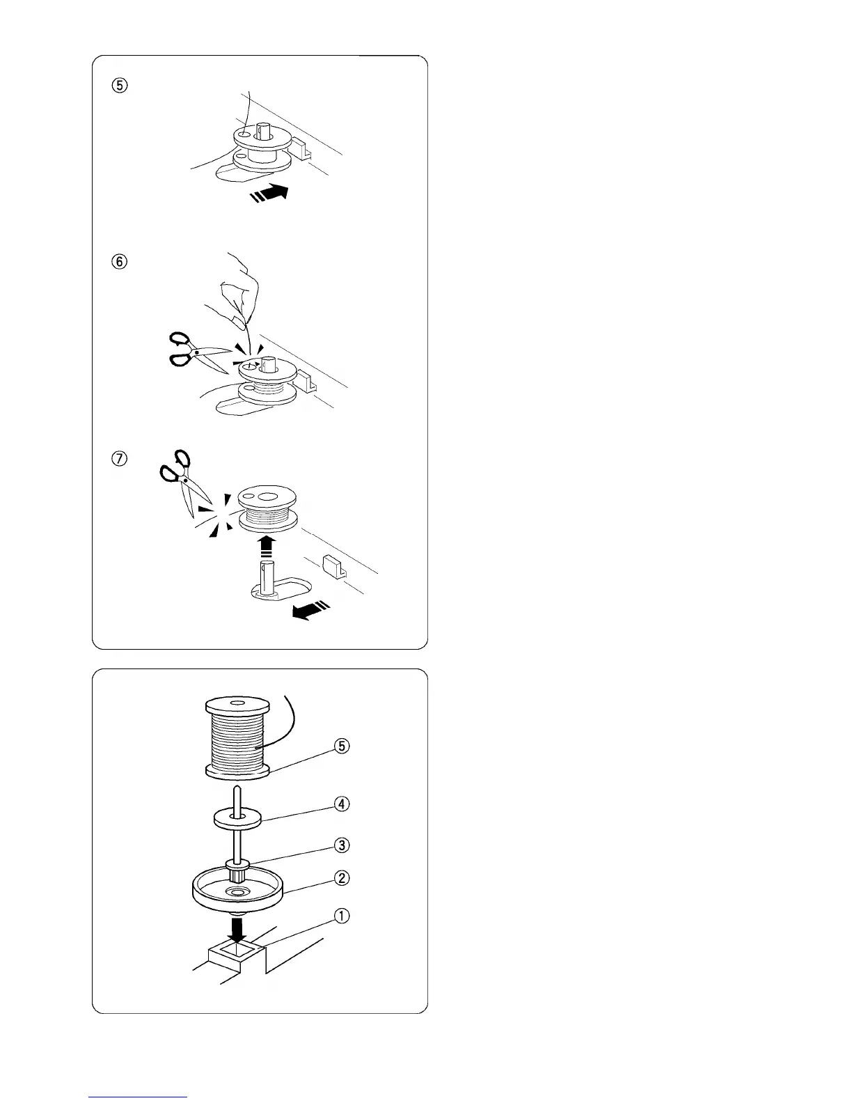 Reprendre le bobinage en appuyant sur la pédale. La