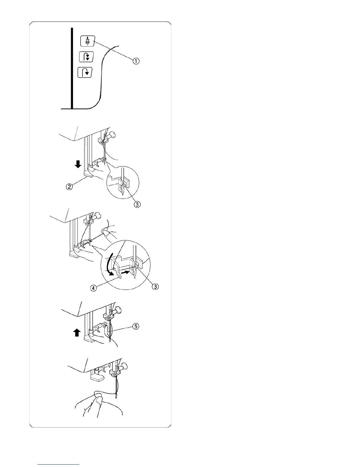 Abaisser le levier de l’enfile-aiguille au maximum. La