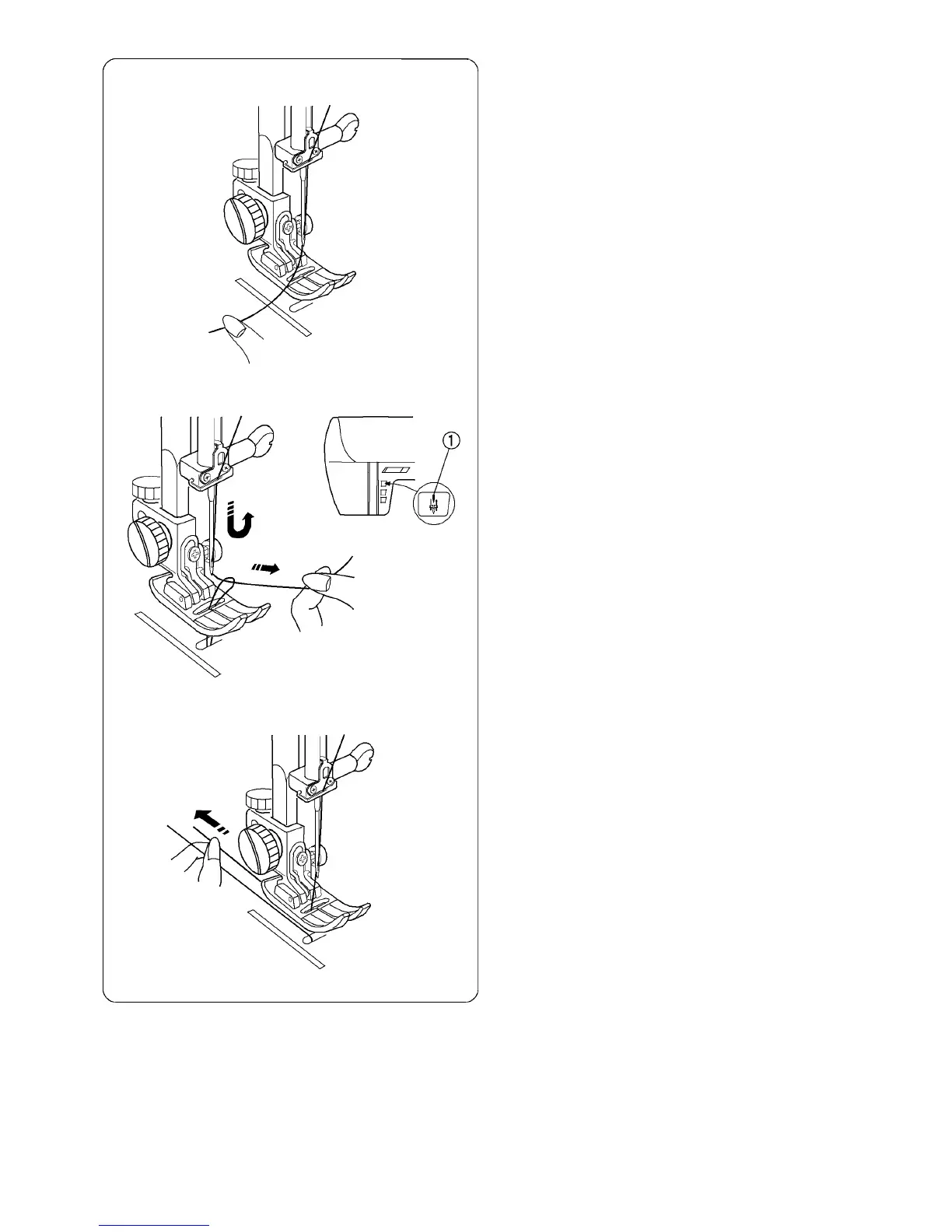 Tirer simultanément vers le haut le fil d’aiguille et une