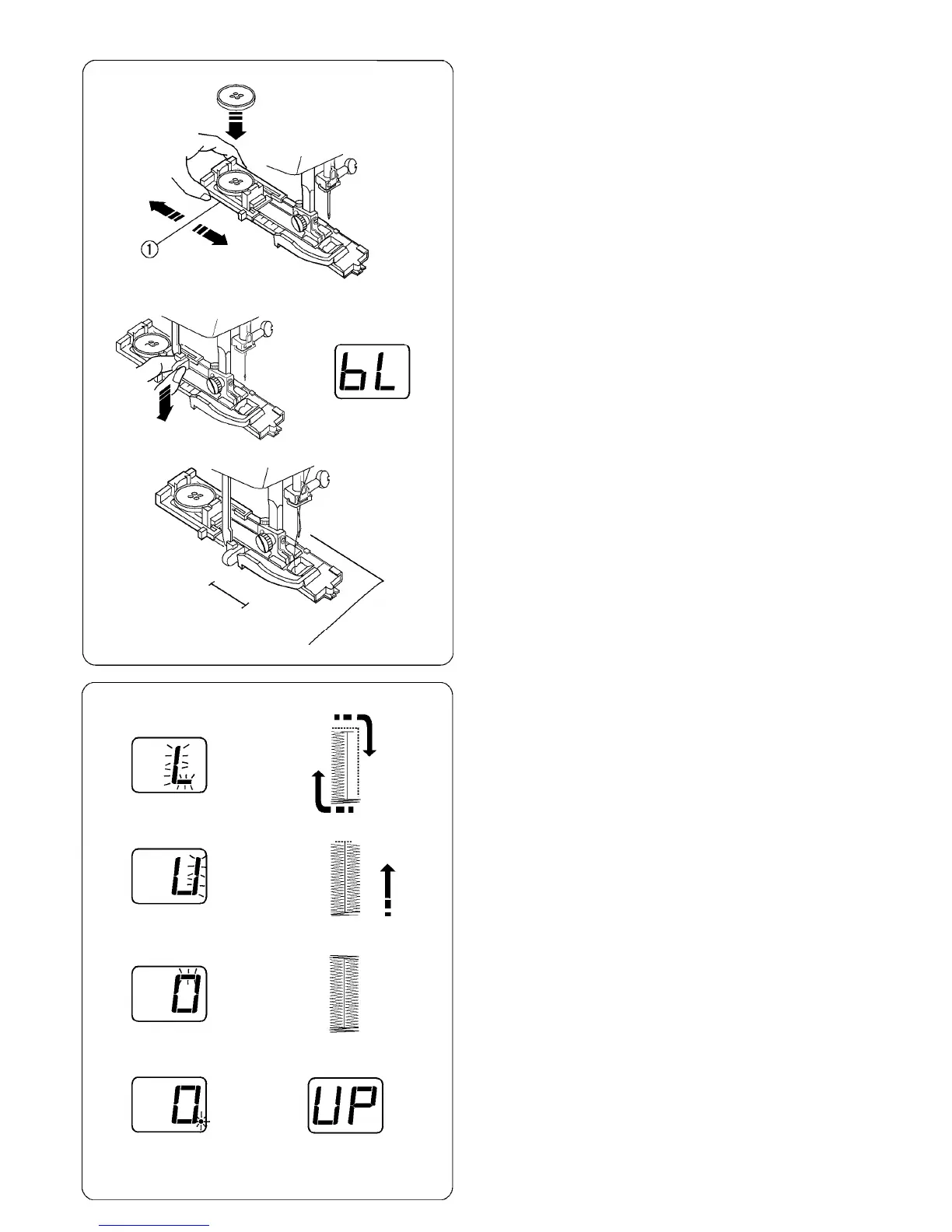 ein Warnsignal „bl“, wenn der Knopfloch-hebel nicht unten