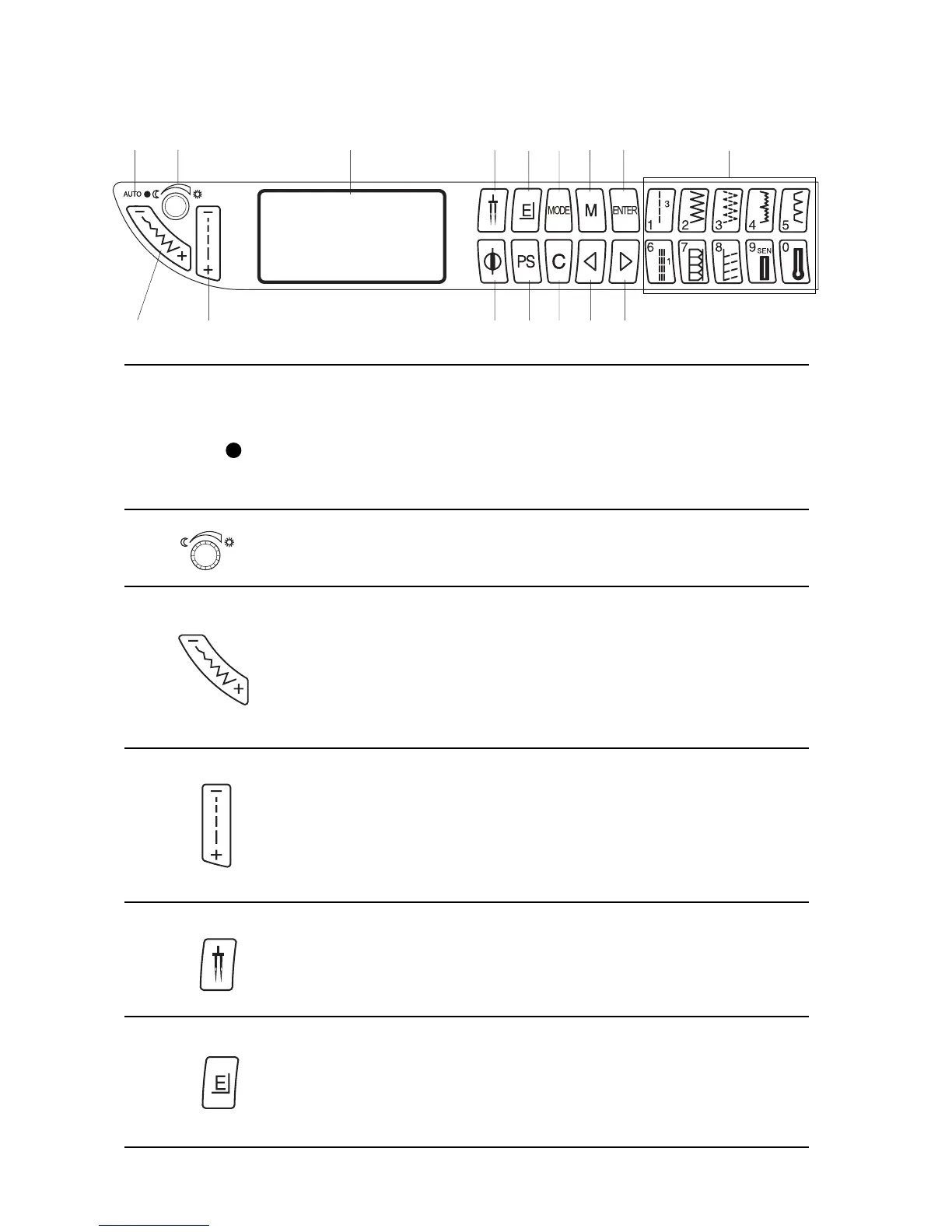 Press “–” or “+” side of key to change setting. Depending on the stitch