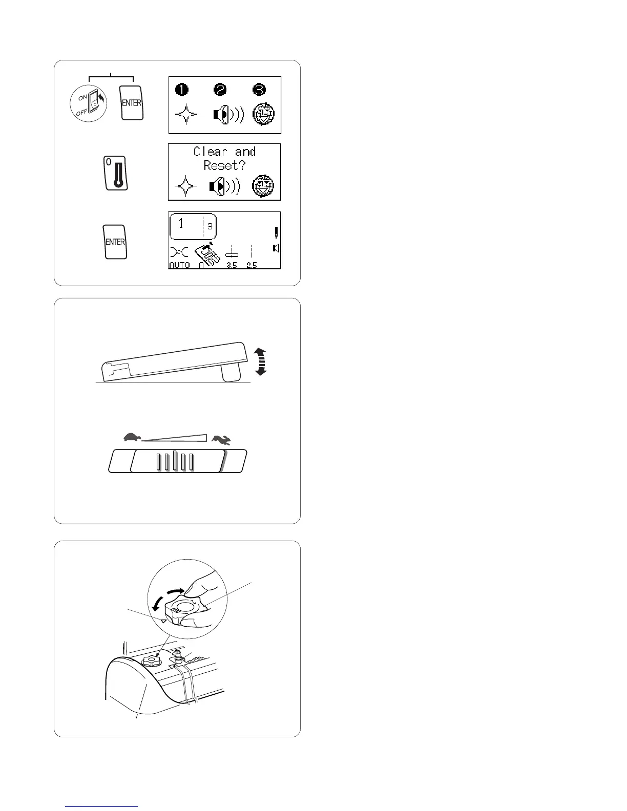 Sewing speed can be varied with the foot control. The