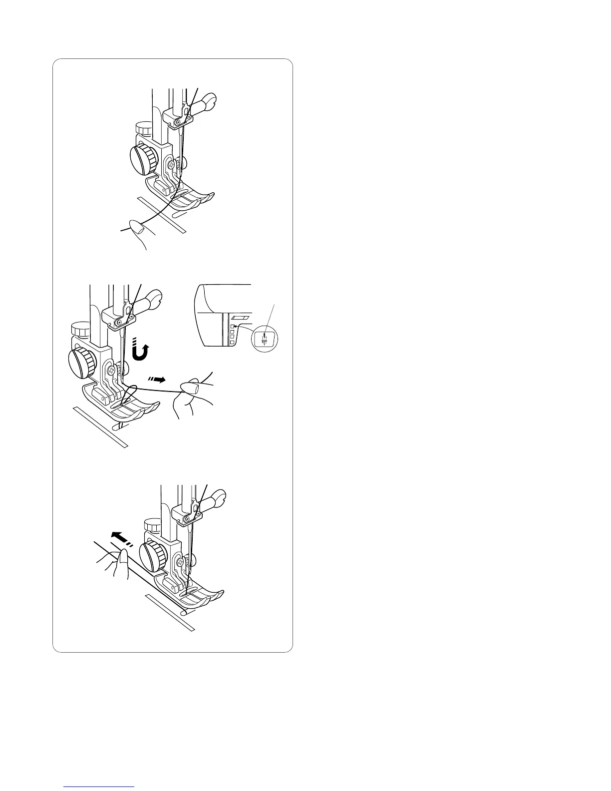 Draw up the needle thread together with a loop of bobbin
