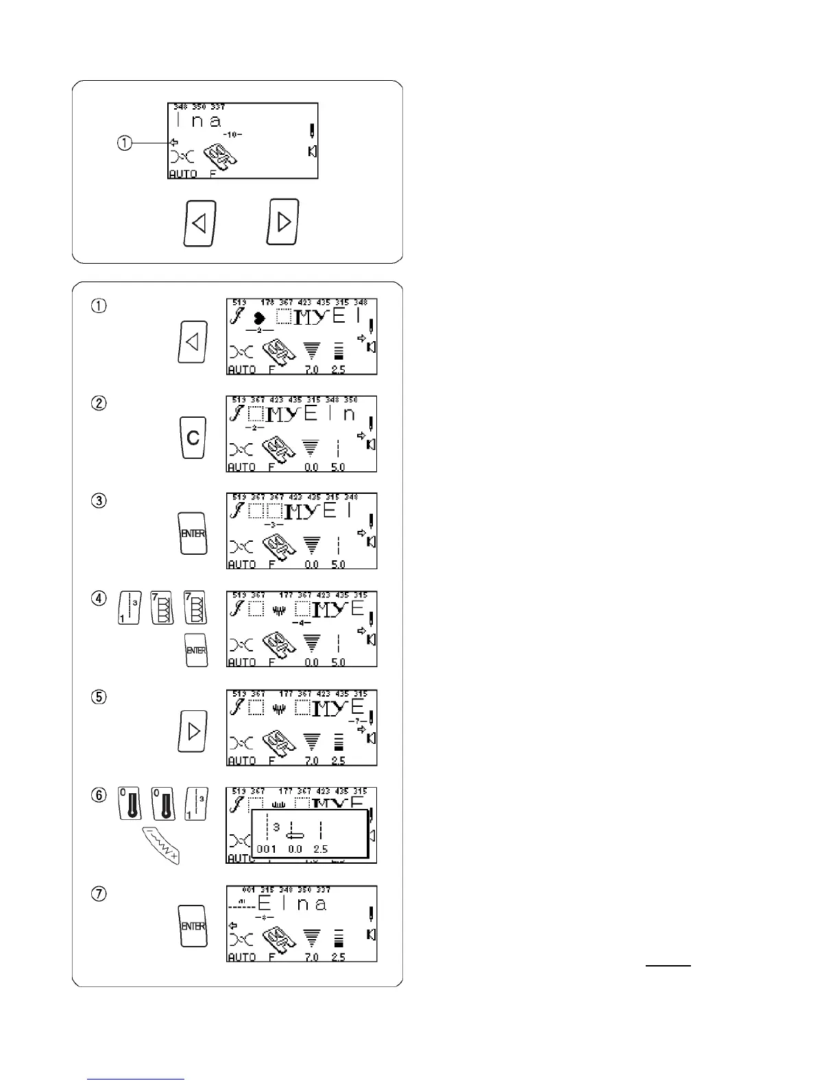 Program the following stitches using the “ENTER” key: