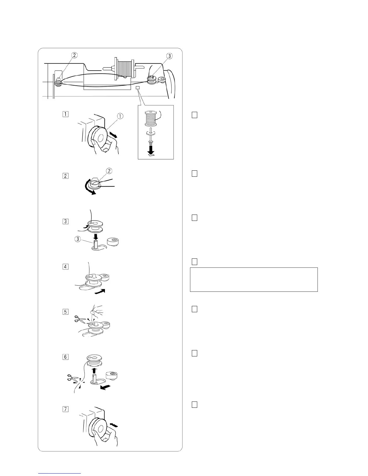 3 Thread through the hole in the bobbin from the inside
