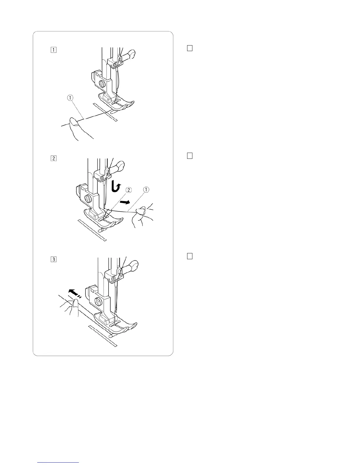 1 Raise the presser foot and hold the needle thread