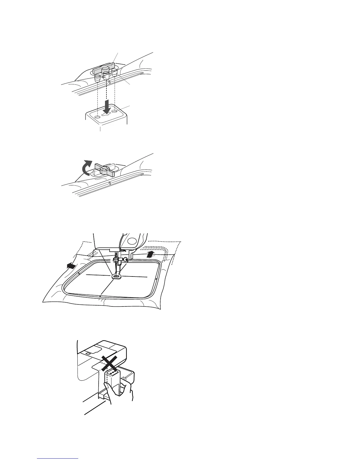 Lift up the presser foot. Rotate the hoop turnkey