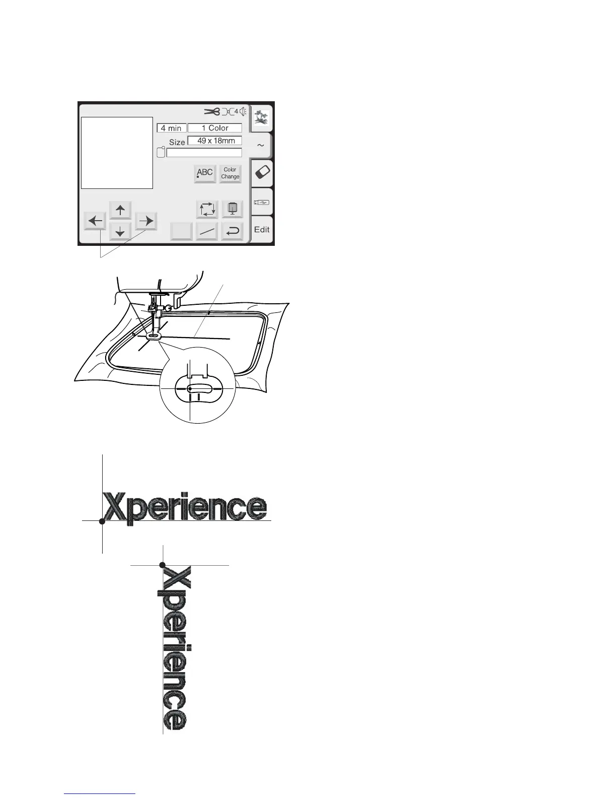 Use the Jog keys q to position hoop and align
