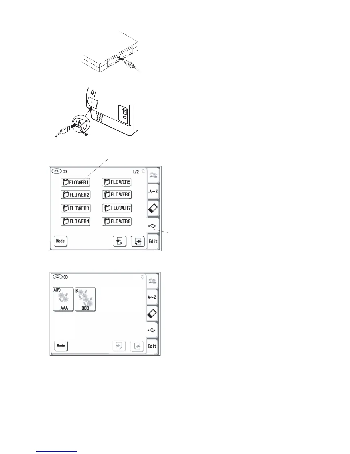 The folder list of the embroidery is now displayed.