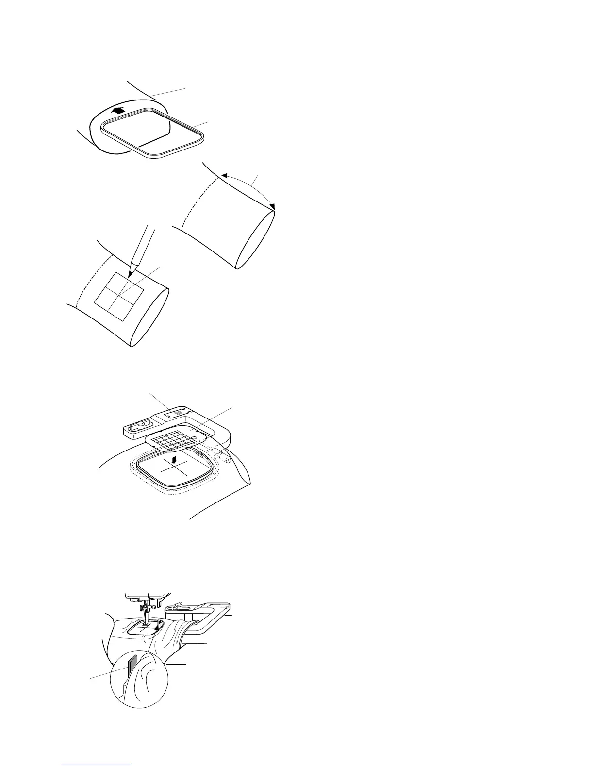 Place fabric around free arm and lock hoop onto carriage.