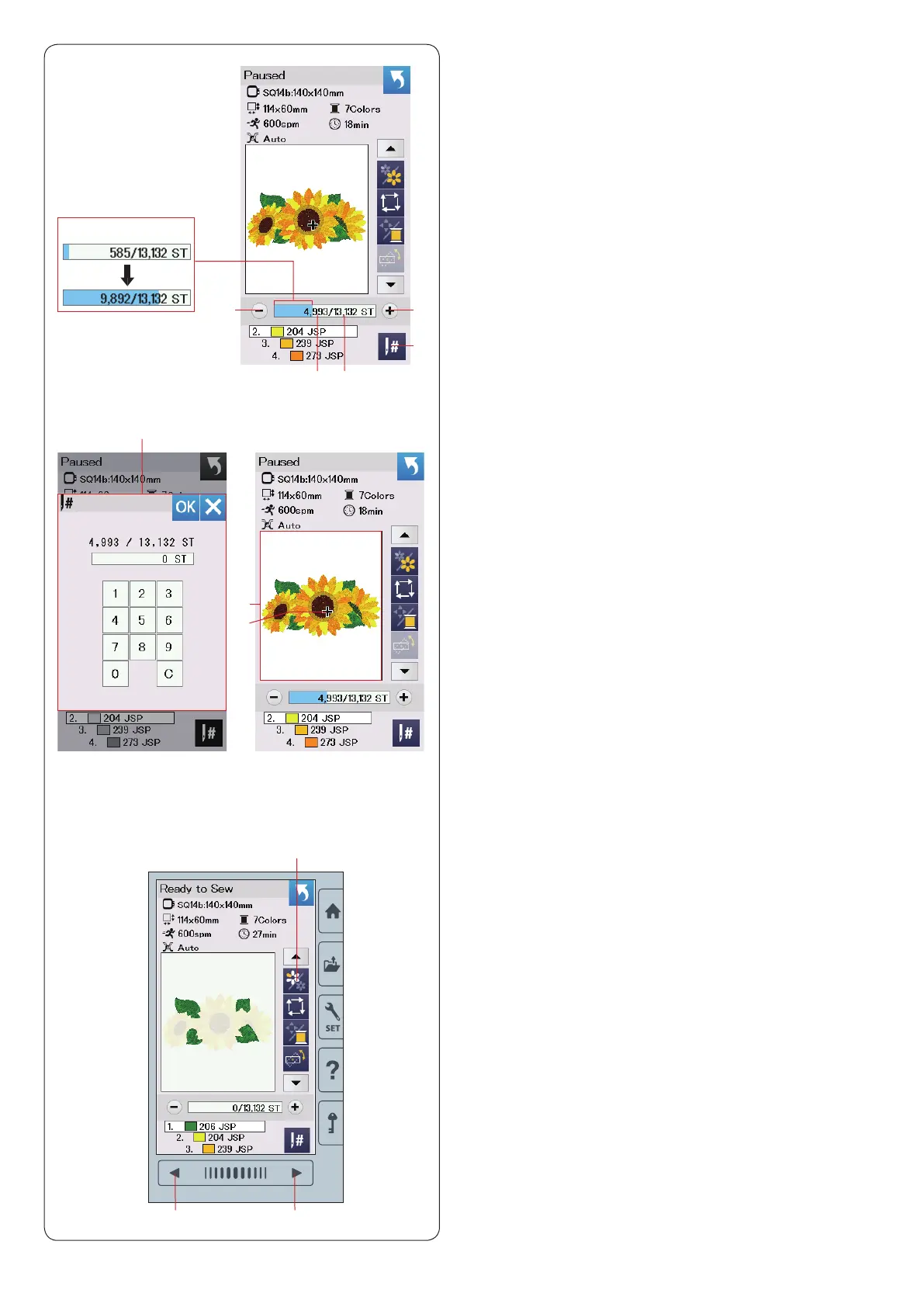 stitch count increases, and indicates the progress of