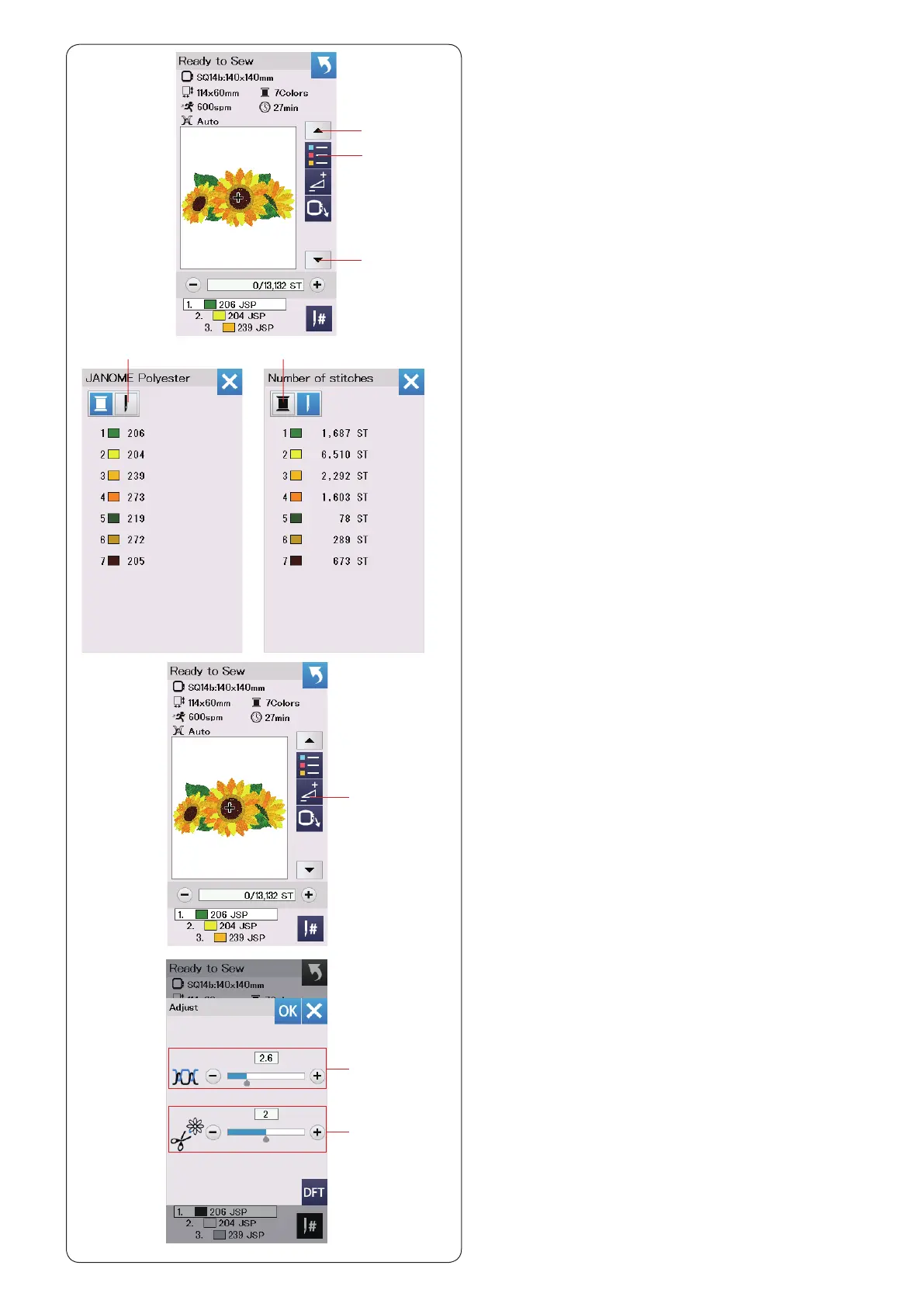 Press the “+” or “–” key to adjust the thread tension to