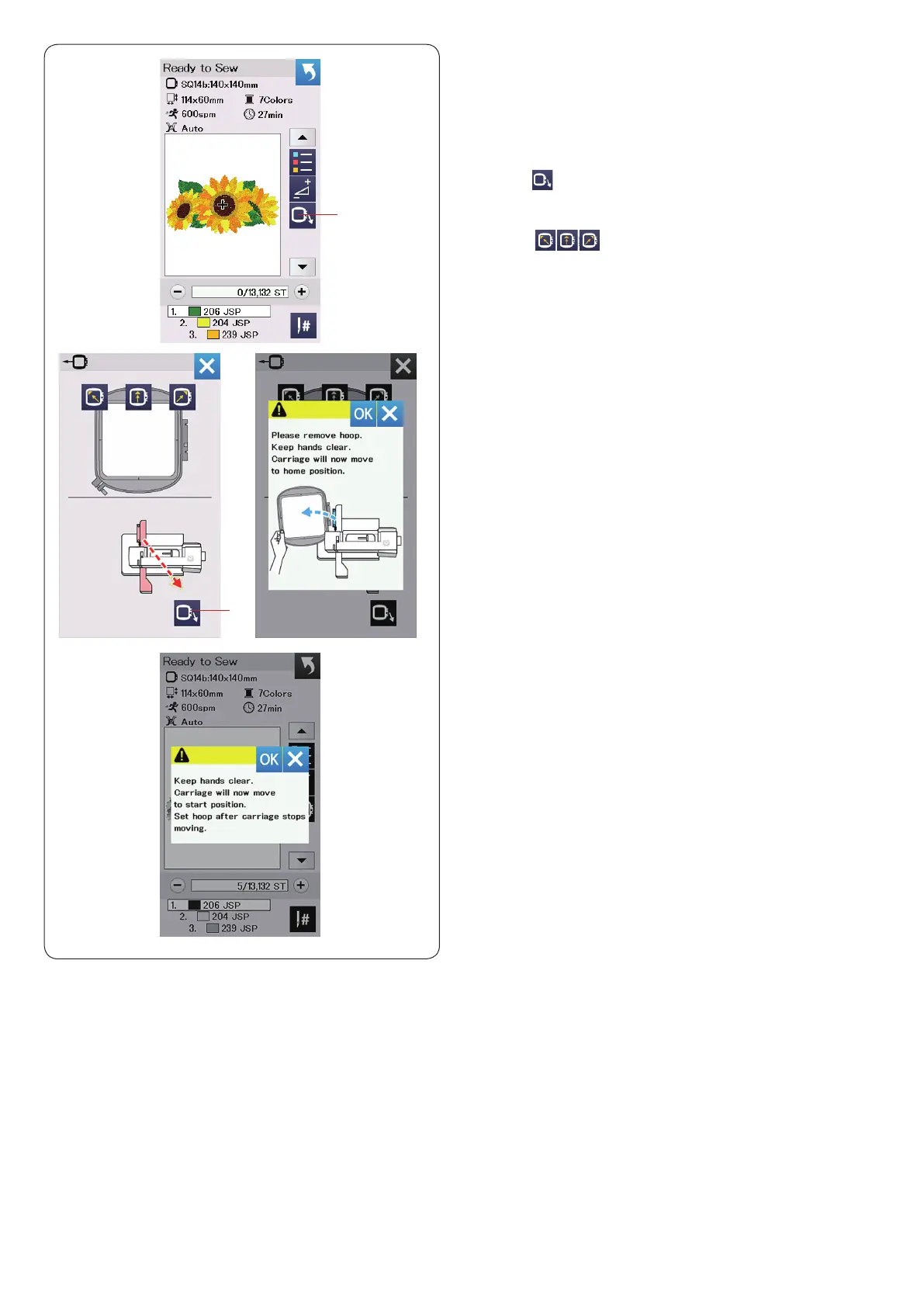 Press the OK key and the hoop will go back to the