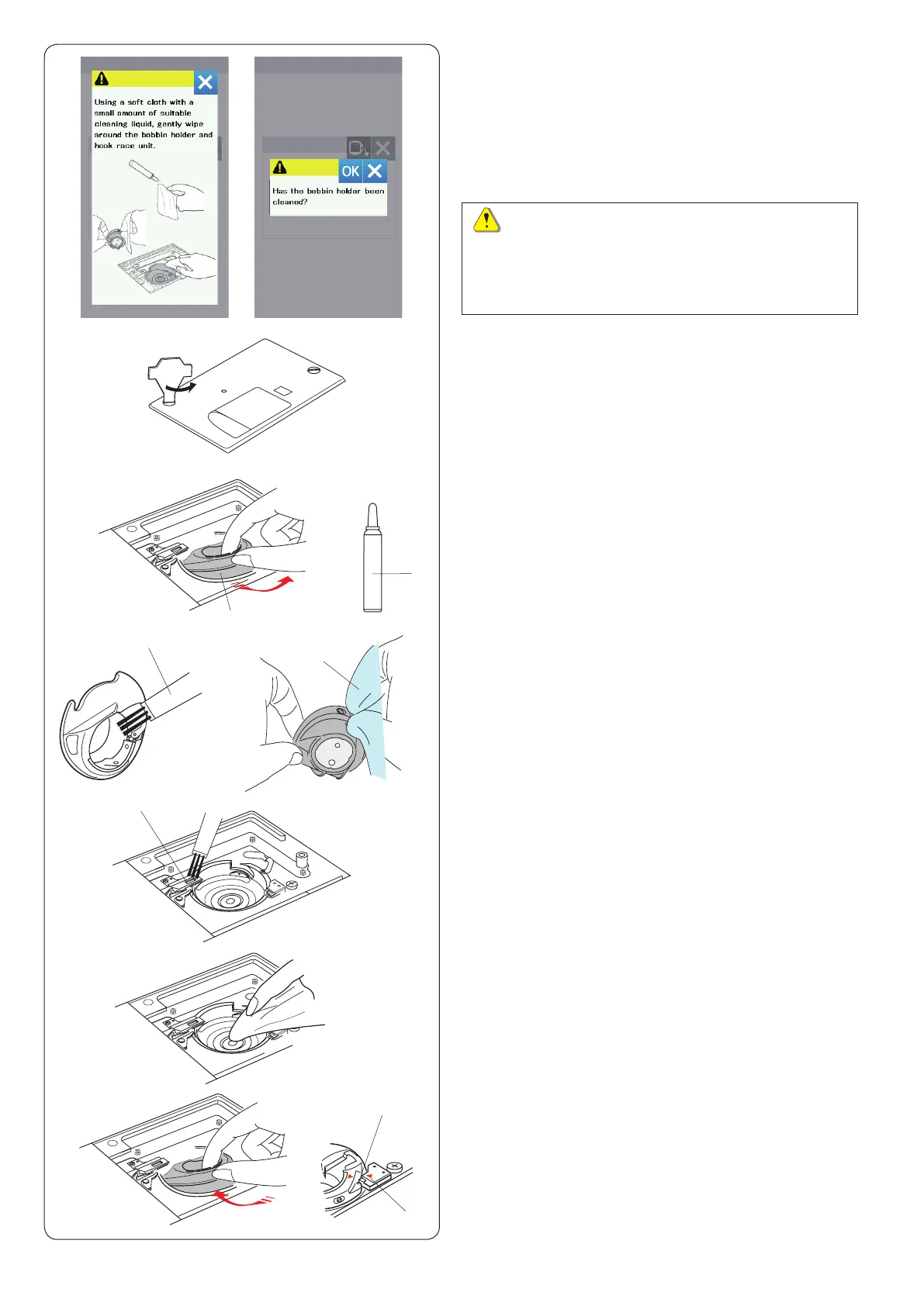 The caution message for cleaning the bobbin case and