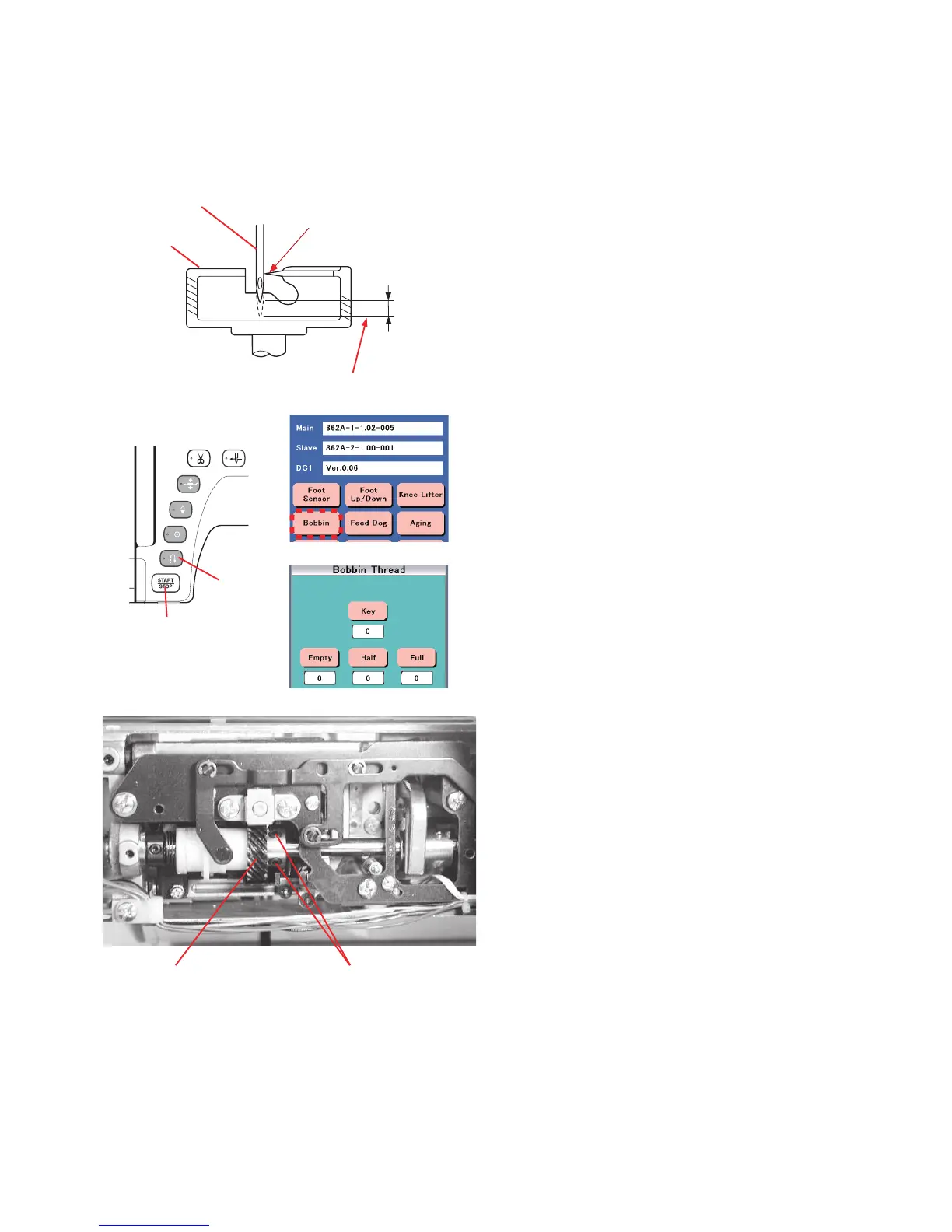 7. Turn the lower shaft gear until the tip of rotary hook meets