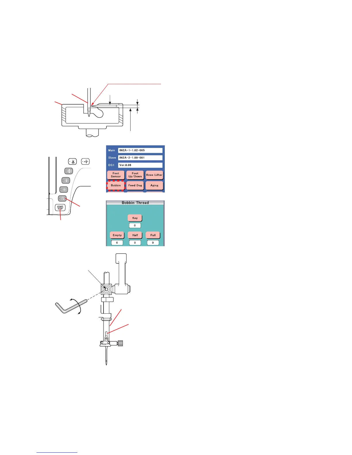 The distance between the upper edge of the needle eye and the hook race should be in the range of 1.6 to 2.0 mm when the tip