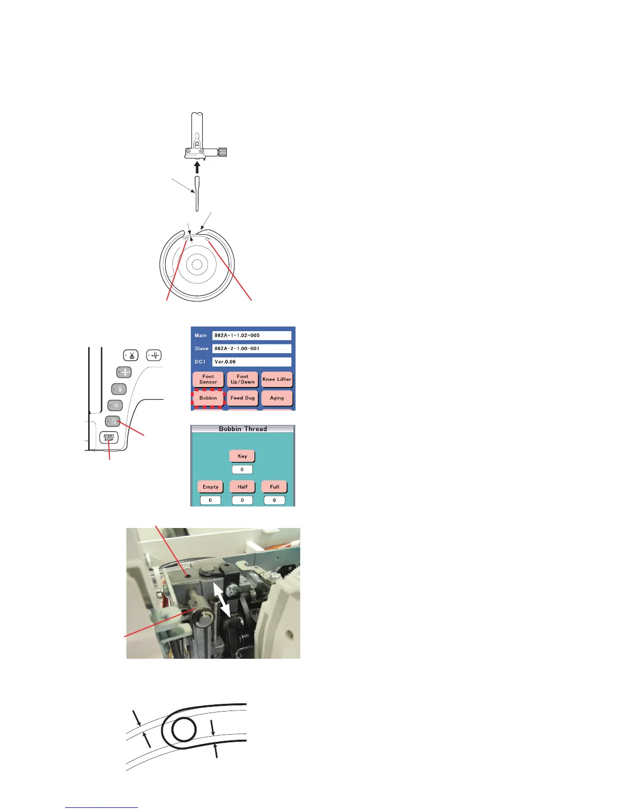 The clearance between the needle and the point of hook should be -0.1 to +0.05 mm.