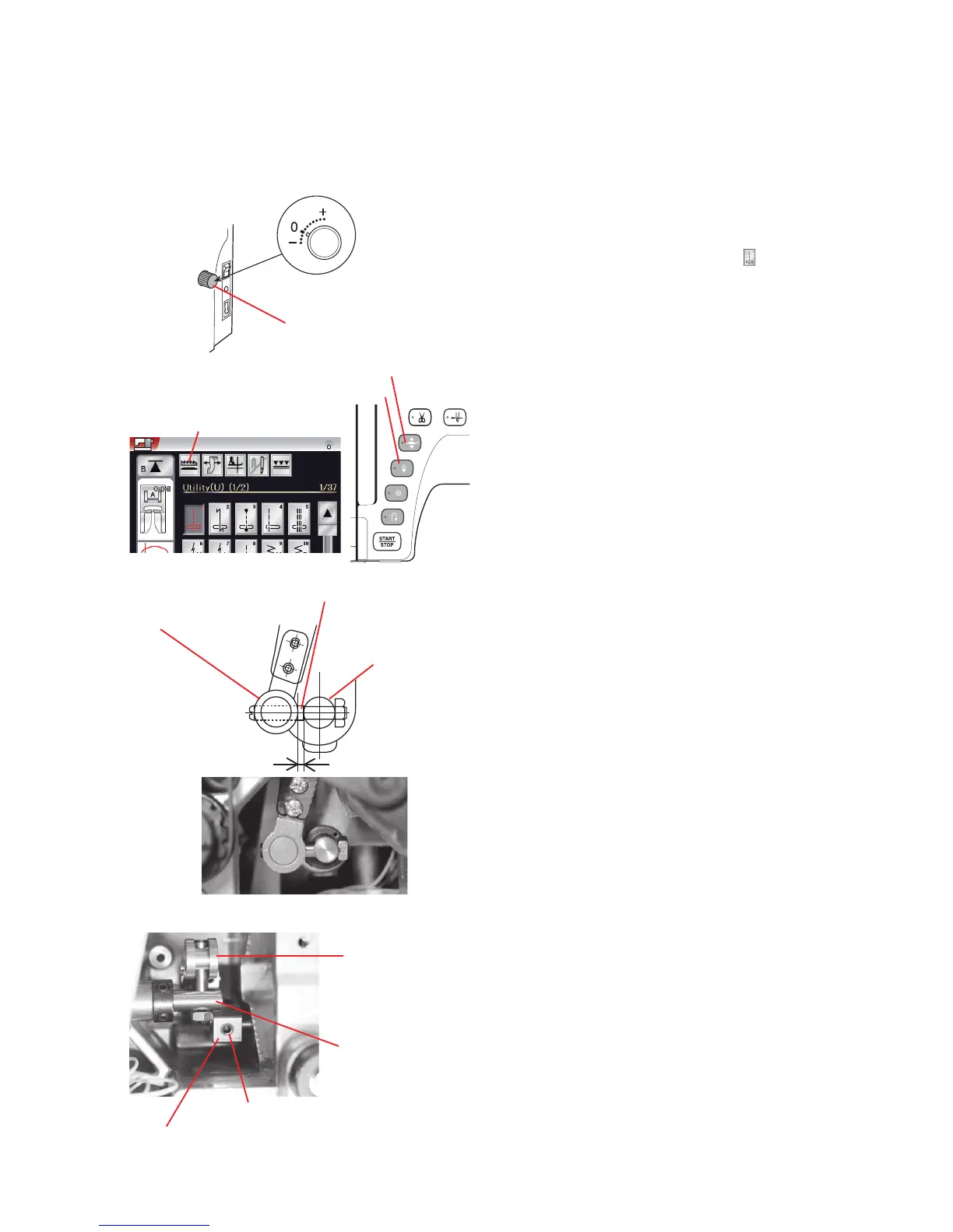The clearance between the upper feed link shaft and upper feed lower shaft should be 2.5 mm when the upper feed adjusting