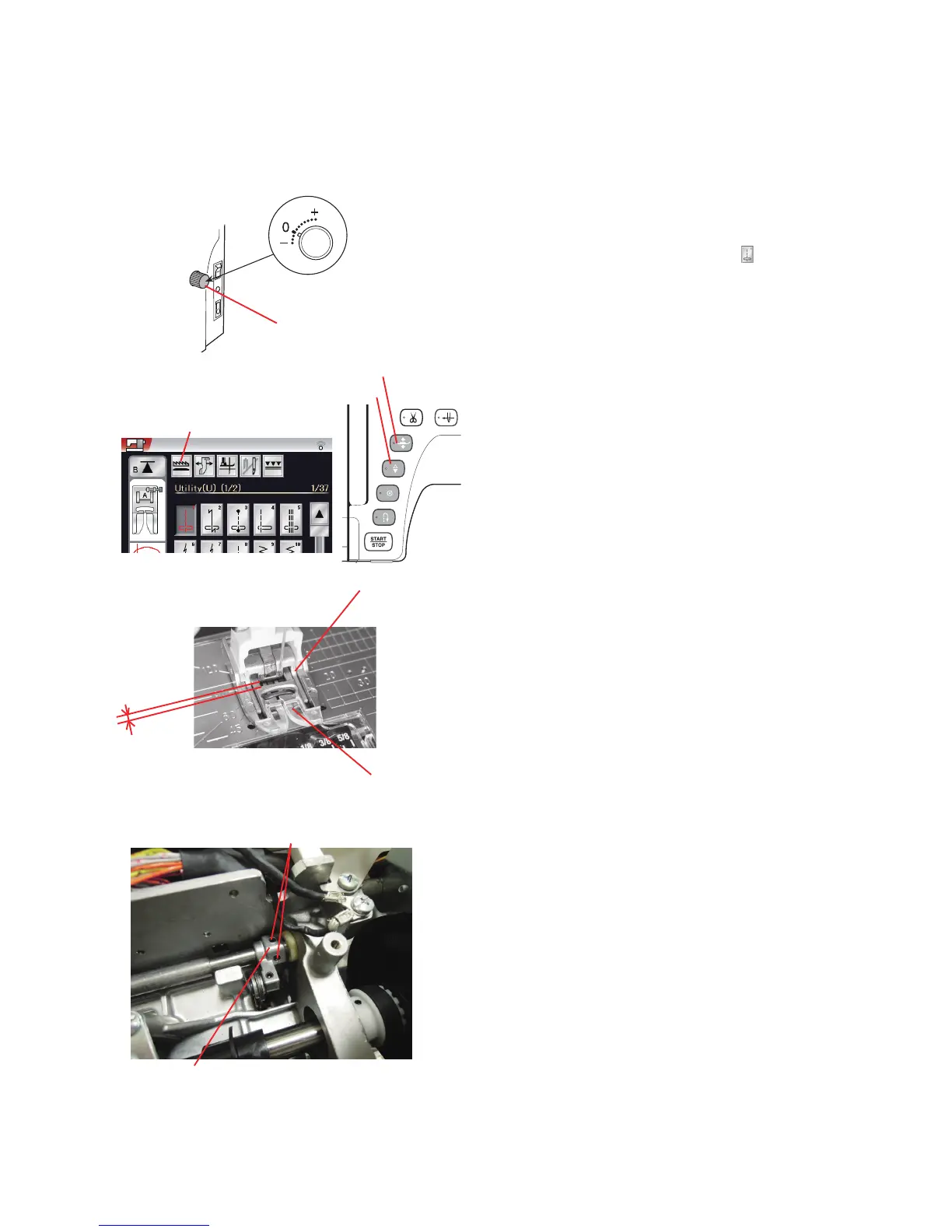 * Check the upper feed dog (1) (see page 31) before this adjustment.