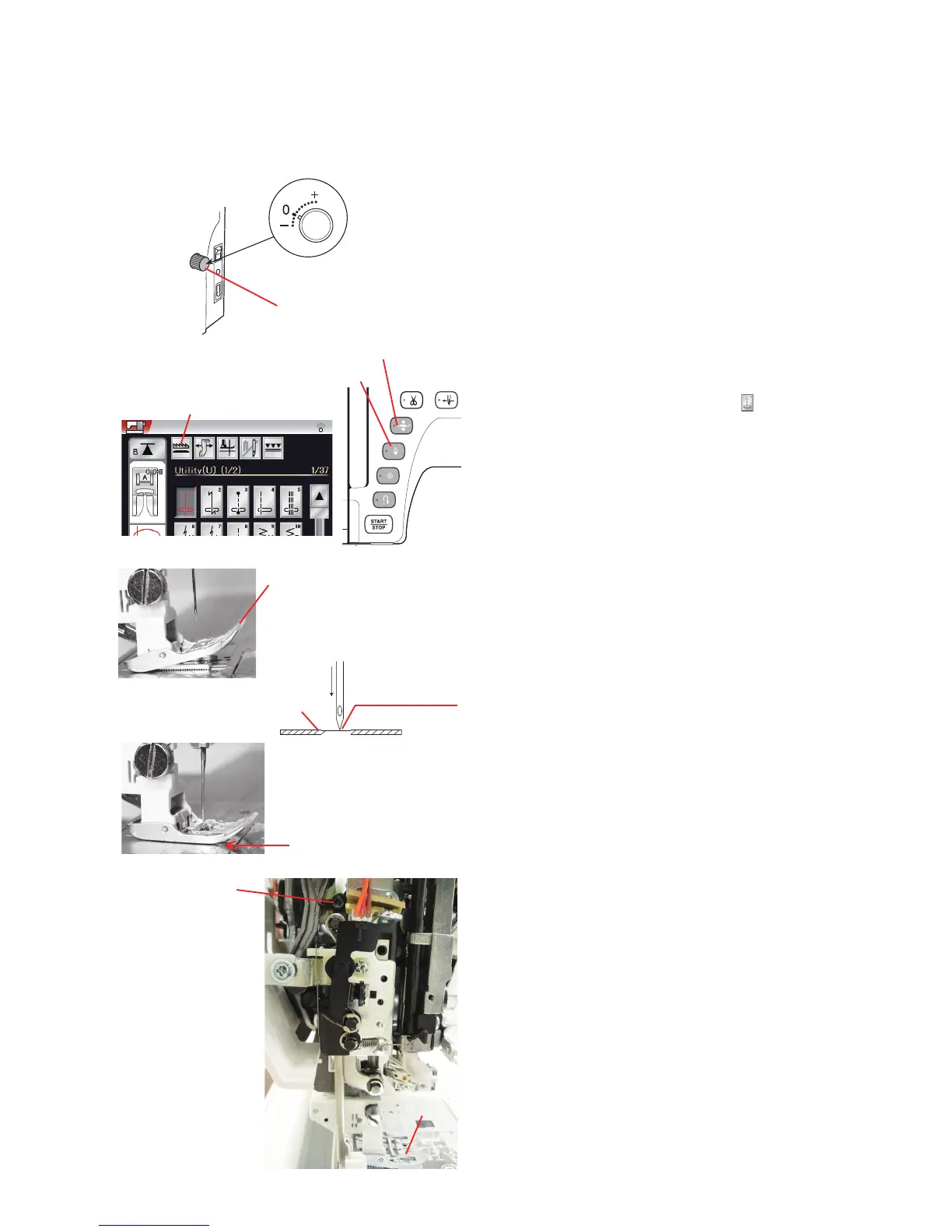 The dual feed foot sits on the needle plate firmly with no gap when the needle tip comes 1 mm or less above the needle plate.