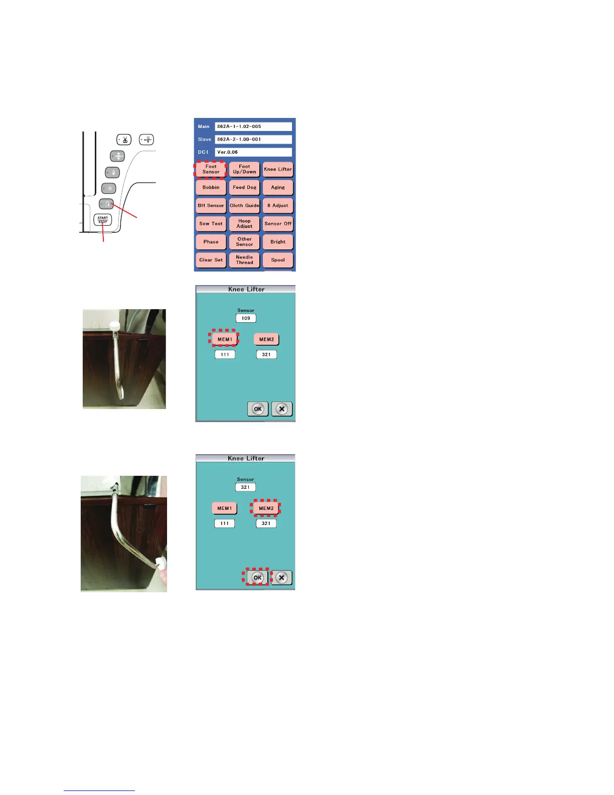 4. Push and hold the knee lifter to the right and press "MEM2"