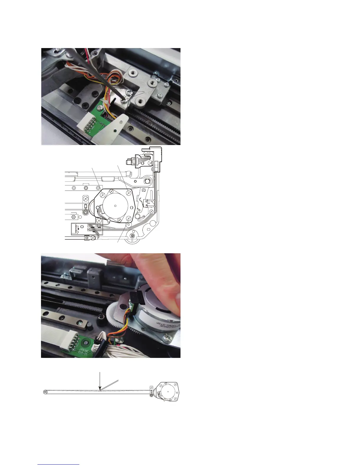 Adjust the X-motor position and tighten the setscrews w (3
