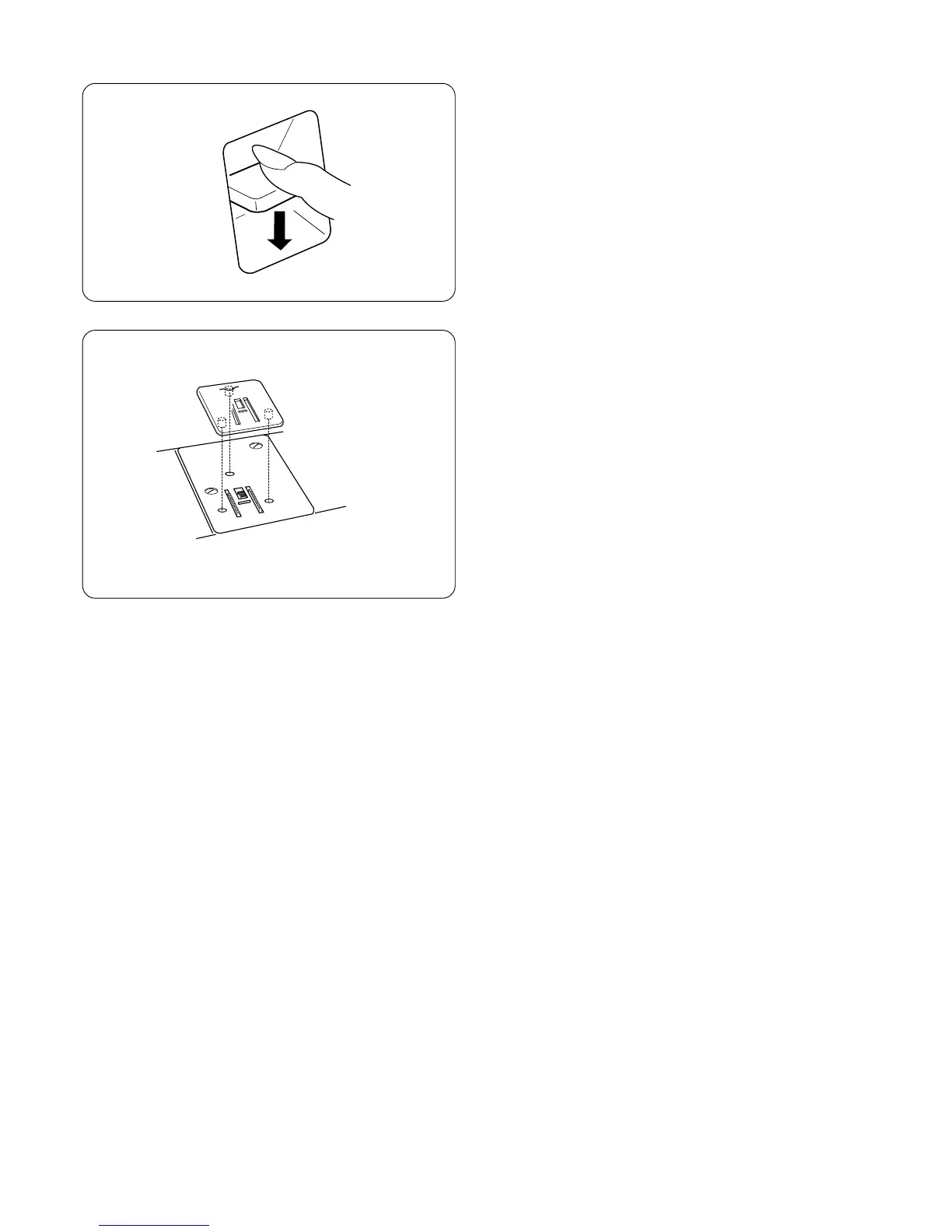 Fit the darning plate pins into the needle plate holes.