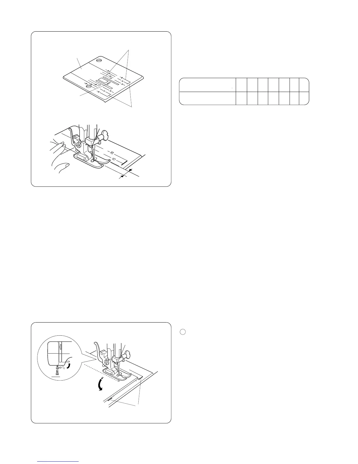 The numbers on the needle plate indicate the distance