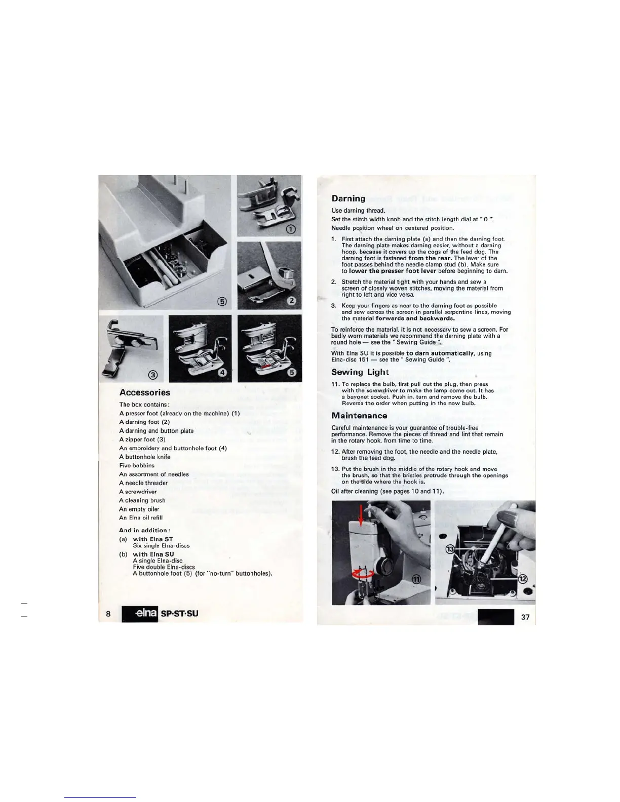 ELNA SP - Accessories; Darning; Sewing Light; Maintenance