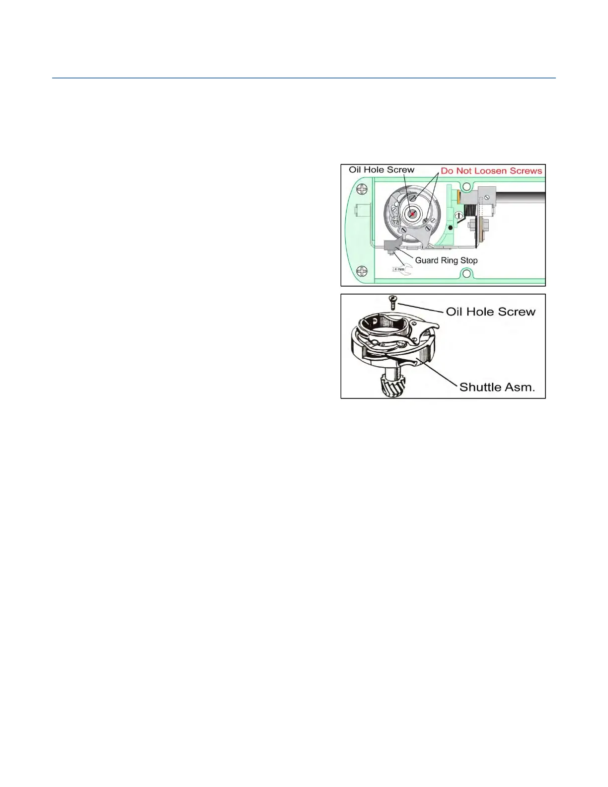 ReplaceTheOilHoleScrew,feeddog,guardringstop,needleplate,presserfootandneedle.Closetheshuttle