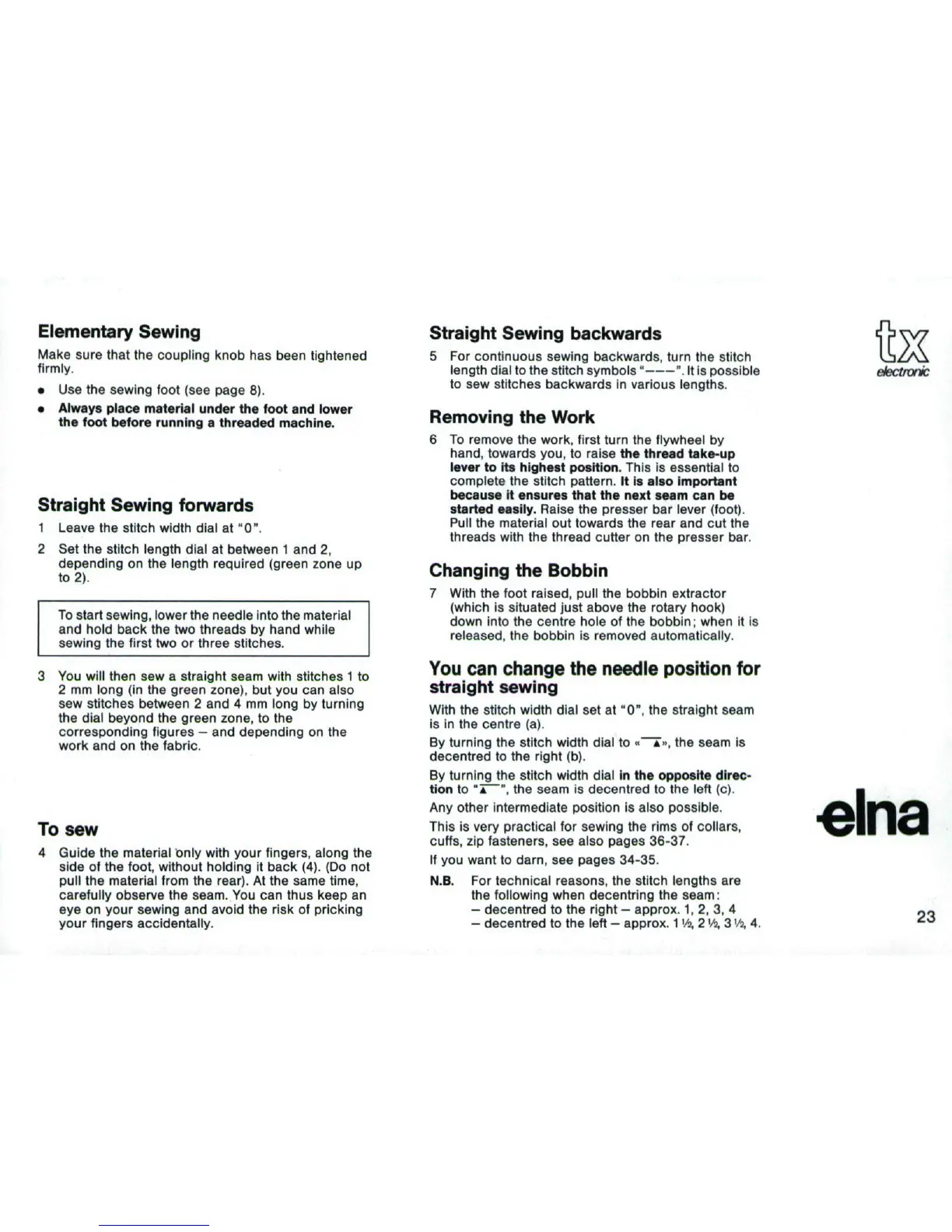 ELNA TX - Straight Sewing