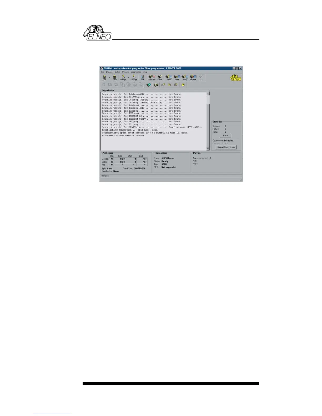 Programmer window information about the status of the