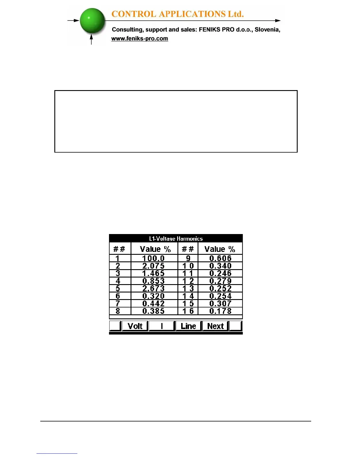 4 Click “Enter”, the Harmonics Volt Table screens