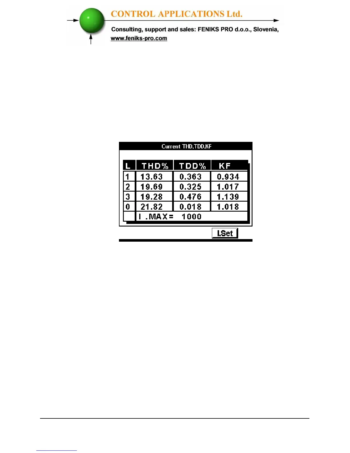 3 Click “Enter“, the Current, THD, TDD, KF Table