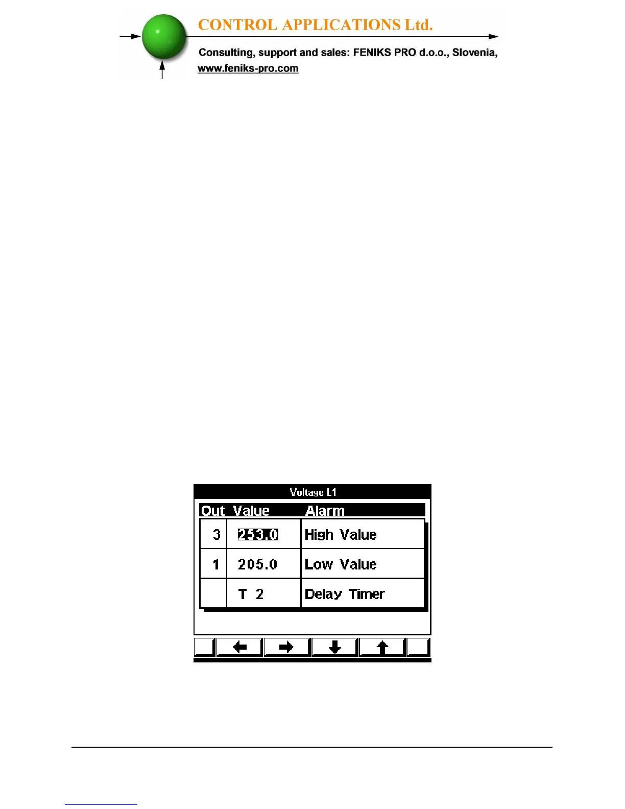 From this screen you will be able to set alarms for Voltages, Currents,